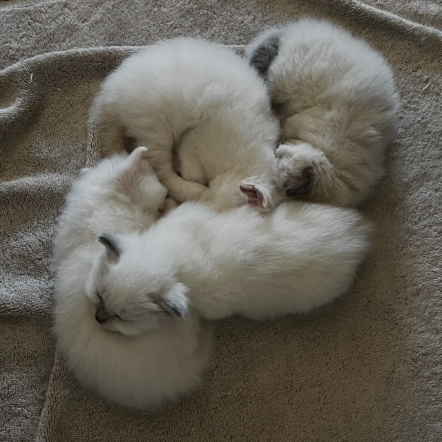Wisteria has one red point boy, one cream point boy, one cream point girl and one seal tortie point girl born 28 September 2025